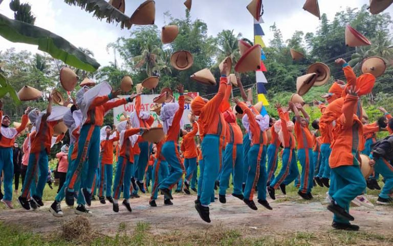 Bahkan anak-anak dengan jenjang umur yang cukup jauh tersebut bisa membaur saat diajak menari tarian caping hingga permainan outbound.