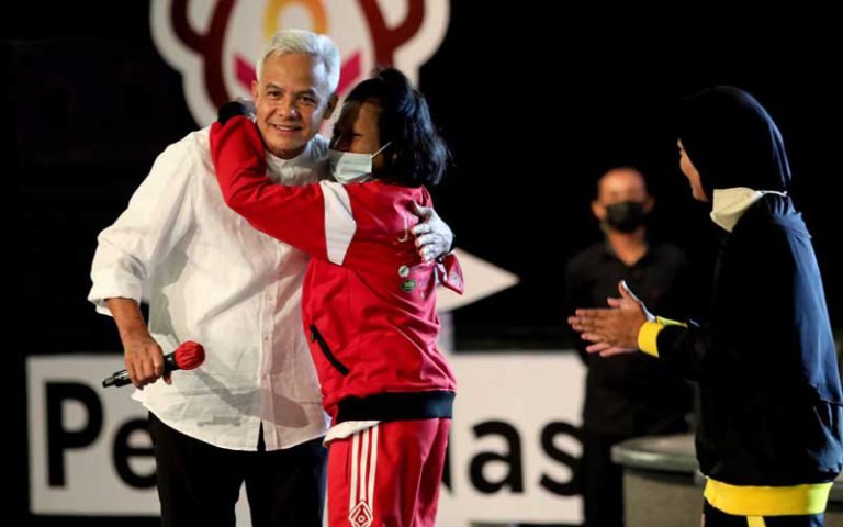 “Buat orang tua yang mendampingi anak-anak kita. Anda semua orang tua luar biasa. Anda orang tua hebat sekali, karena memberikan suport kepada anak-anak bertalenta khusus ini. Jangan pernah menyerah menjaga titipan Tuhan yang hebat-hebat ini,” kata Ganjar disambut tepuk tangan bergemuruh dari para peserta.