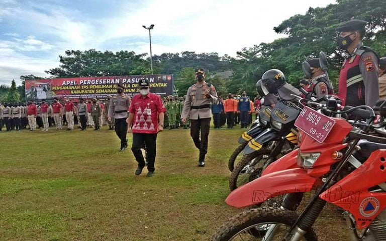 Bertempat di Alun-alun Bung Karno Kalirejo, Ungaran Timur, ribuan personel gabungan dari TNI, Polri, Linmas dan instansi terkait lainnya mengikuti Apel Pergerakan Pasukan Pengamanan TPS Pilkades Serentak Kabupaten Semarang Tahun 2022, Rabu (26/10/2022).