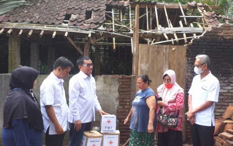 RASIKAFM.COM | SALATIGA – Palang Merah Indonesia (PMI) Salatiga memberi bantuan kepada Jumini Warga RT 3 RW 7 Gunungsari Sidorejo Kudul Tingkir Salatiga yang rumah bagian belakangnya ambruk. Bantuan diserahkan ketua PMI Salatiga Muh Haris didampingi segenap pengurus PMI.