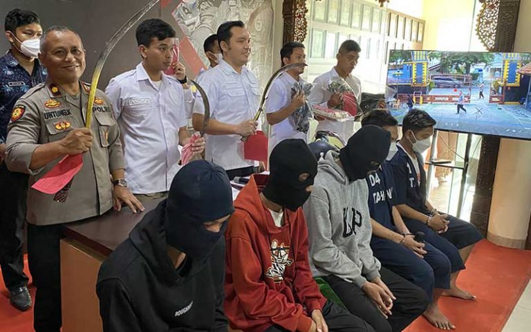 “Jadi dari lima tersangka ini kita terbitkan empat laporan polisi dimana tiga terkait undang-undang darurat, yang satu terkait penganiayaan yang dilakukan oleh terangka LN yang status masih pelajar di SMKN 10,” tambahnya.