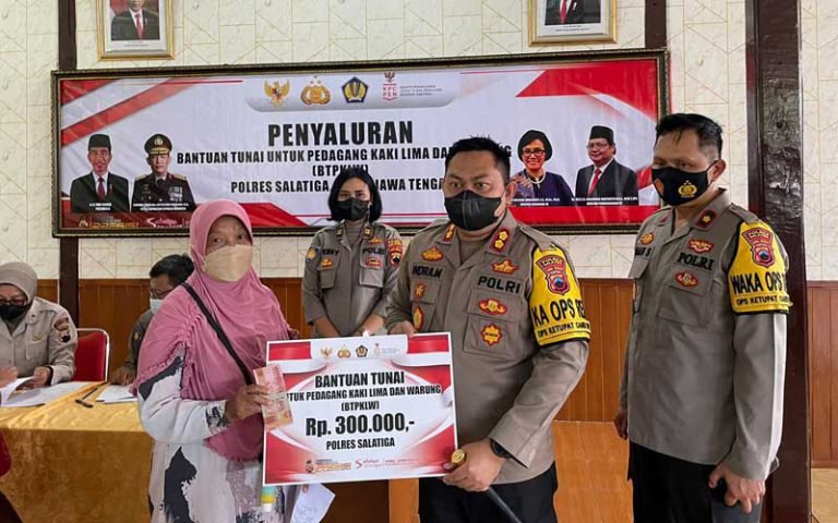 Sedikitnya 1.800 Dari 5.000 BTPKLW Disalurkan Polres Salatiga Kepada Warga Kota Salatiga minggu 24-4-22 siang. penyalurkan Bantuan Tunai Pedagang Kaki Lima dan Warung (BTPKLW) sebesar Rp. 300.000,- (Tiga Ratus Ribu Rupiah).dilaksanakan bersamaan dengan vaksinasi booster
