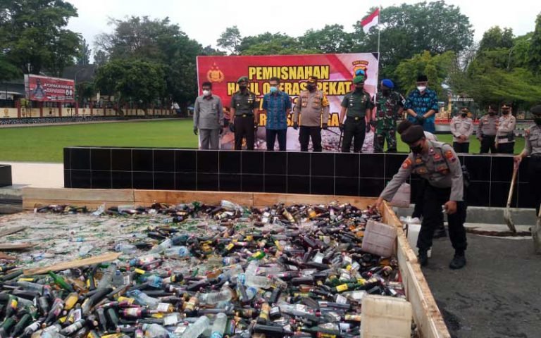 Berbagai merek miras seperti anggur kolesom, anggur putih, vodka, wisky dan congyang serta ratusan liter arak atau tuak dan ciu dimusnahkan dengan menggunakan alat berat, secara simbolis dilaksanakan oleh Kapolres Salatiga bersama Walikota Salatiga dan jajaran Forkopimda Kota Salatiga serta Tokoh Agama Ketua FKUB Kota Salatiga
