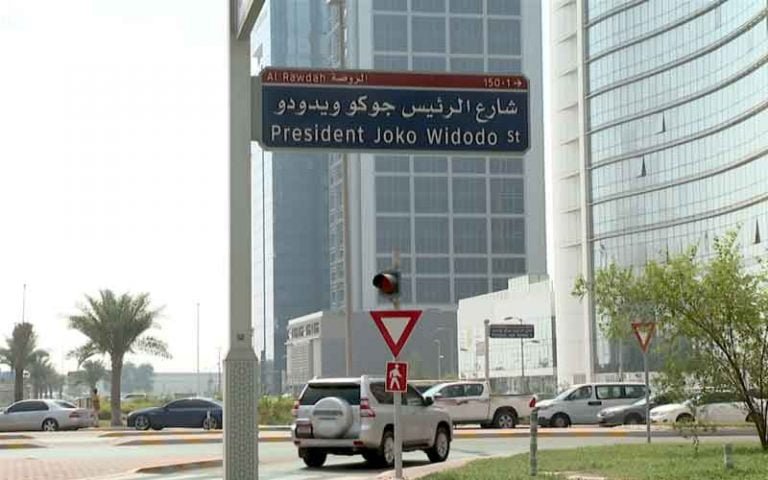 Jalan Presiden Joko Widodo telah diresmikan pada 19 Oktober 2020 oleh Chairman Abu Dhabi Executive Office, Sheikh Khalid Bin Mohammed Bin Zayed Al Nahyan. Jalan sepanjang lebih kurang 2,5 kilometer terletak itu di salah satu ruas jalan utama, yang membelah Abu Dhabi National Exhibition Center (ADNEC) dengan area kedutaan.