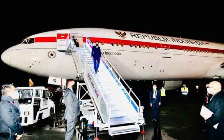 Presiden Joko Widodo (Jokowi) dan rombongan mendarat di Bandara Internasional Glasgow Prestwick di Glasgow, Skotlandia, pada Minggu, 31 Oktober 2021, sekitar pukul 21.40 waktu setempat.