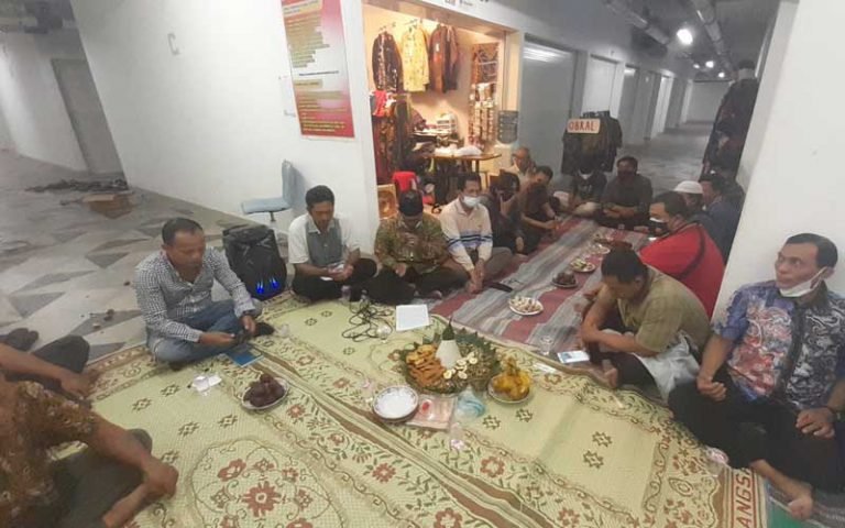 SEMARANG – Ratusan pedagang Pasar Johar yang berada di blok Bassement mengadakan doa bersama secara sederhana pada Senin (28/2/2022) malam.