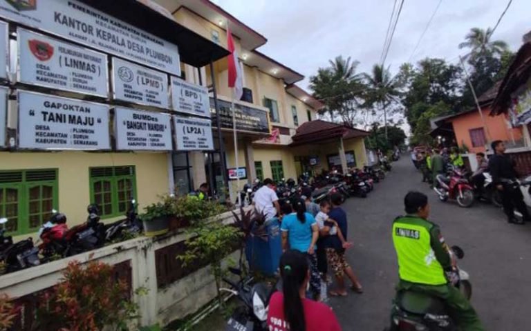 Ratusan warga Desa Plumbon Kecamatan Suruh Kabupaten Semarang bersama-sama datangi Kantor Desa Plumbon.