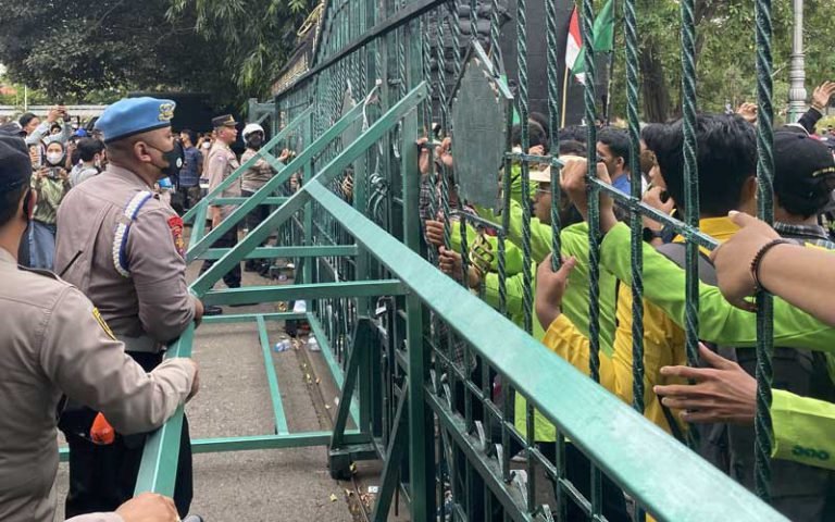 Dalam pantauan, aksi penolakan kenaikan BBM ini berlangsung dengan situasi memanas. Dinilai aspirasinya dihiraukan oleh Pemerintah Provinsi (Pemprov) Jateng, ribuan mahasiswa ini nekat masuk ke dalam kantor dengan cara menerobos pagar yang digembok oleh petugas kepolisian.