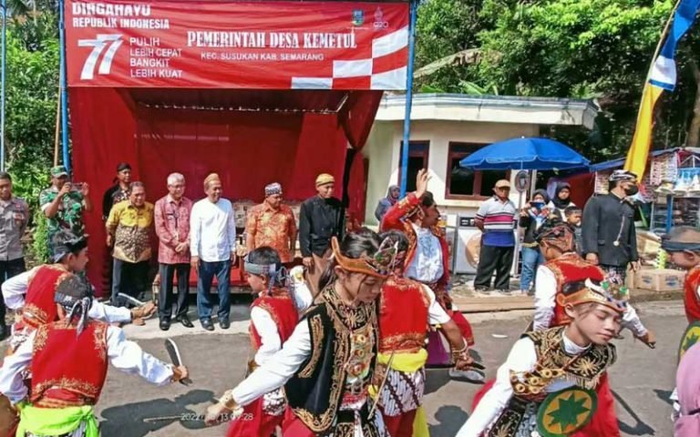 Merti Desa Kemetul, Kecamatan Suruh, Kabupaten Semarang, Jawa Tengah disemarakkan ribuan warga dan pelajar. Merti desa digelar setahun sekali namun selama 2 tahun sebelumnya tidak diadakan karena pandemi Covid-19.