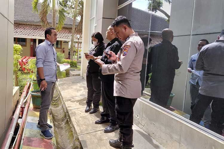 Polisi saat lakukan olah TKP korban yang terjatuh dari RSUD