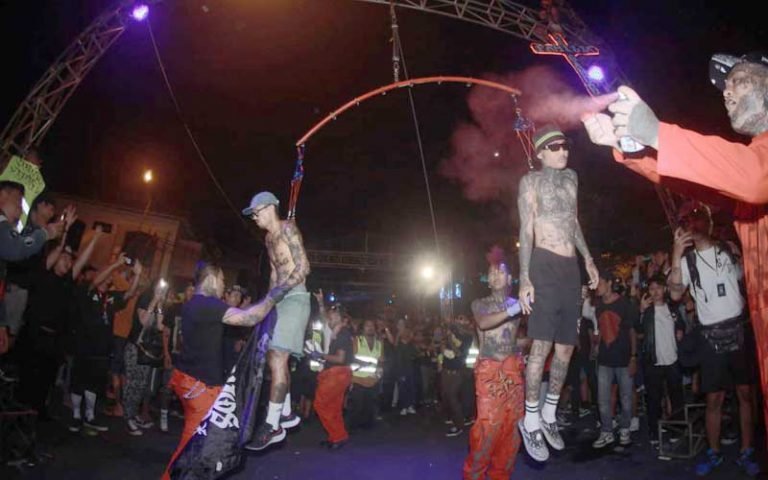 Pertunjukan body suspension biasa dilakukan sepaket dengan kontes tato.