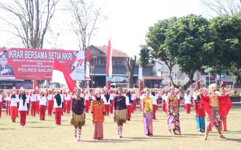 Ikrar ini diikuti oleh ratusan peserta yang terdiri dari : personil Polri, TNI , Paskibra Kota Salatiga, dan penari tradisional, tutup AKBP Indra Mardiana.
