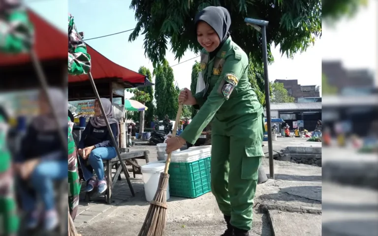 RASIKAFM.COM | UNGARAN – Inilah Tina Fitriani (26), sosok personel Satpol PP dan Damkar Kabupaten Semarang yang sempat mencuri perhatian saat kegiatan bersih-bersih pasar yang dilakukan bersama TNI-Polri di Pasar Karangjati, Kecamatan Bergas, Selasa (9/1/2024).