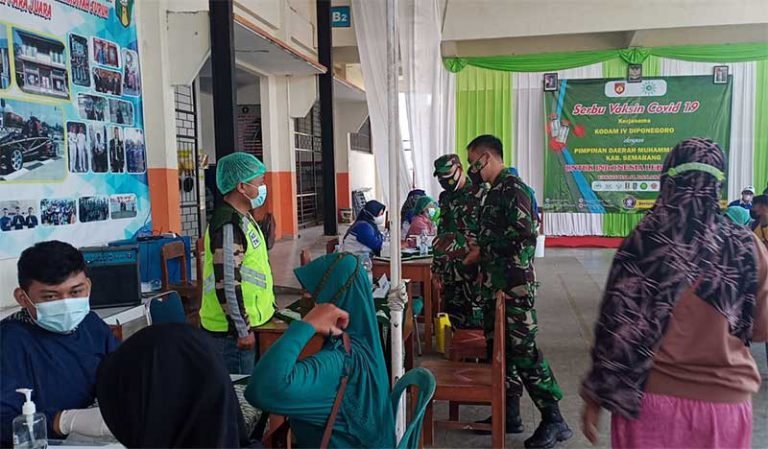 RASIKAFM – Serbuan vaksinasi massal sebagai program nasional terus dilakukan. Kali ini dilakukan oleh Kodim 0714/Salatiga dengan dibantu oleh para tenaga kesehatan dari Dinas Kesehatan wilayah Salatiga, di SMK Muhammadiyah Suruh, Selasa (28/9/2021). Dalam progam ini, sedikitnya 1500 dosis pertama disediakan.