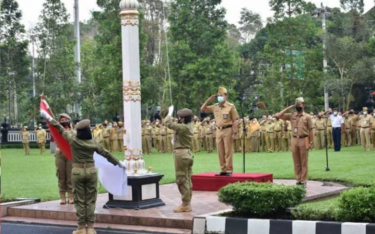 Walikota Salatiga Yuliyanto memimpin langsung upacara pengibaran bendera merah putih pada apel pagi di Lingkungan Pemerintah Kota Salatiga. Senin 10-1-22. Kepada peserta Upacara, Dirinya menekankan pentingnya penerapan pelayanan prima kepada masyarakat.