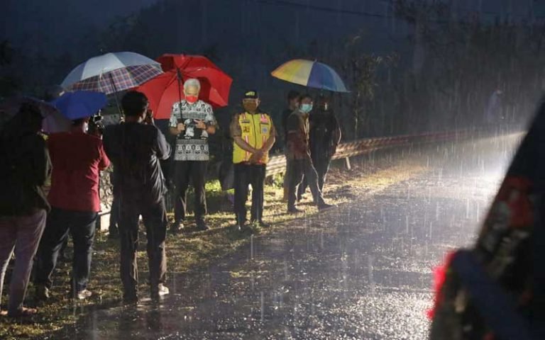 “Nah dengn kondisi cuaca seperti ini, terus kemudian kendaraan yang lewat di atasnya, belum termasuk potensi bencana, maka ada potensi-potensi kerusakan,” ujar Ganjar.