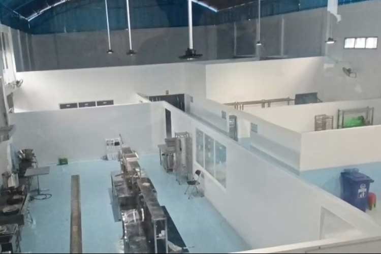 Sementara penerimaan bahan baku dilakukan di lantai bawah. Dua gudang tersedia, yakni gudang bahan basah dan gudang bahan kering.