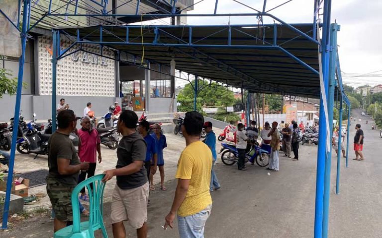 Dalam pantauan, di kediaman rombongan bus tersebut, pada pukul 16.00 WIB para warga memasang enam tenda yang berjejer di Jalan Gedongsongo Raya, Kelurahan Manyaran, Kecamatan Semarang Barat atau tepatnya di depan kampung RT 5 RW 2.
