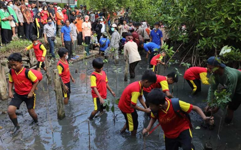 Tanam Mangrove Bareng Pelajar, Ganjar Canangkan  Ekowisata Mangrove Muara Kali Ijo
