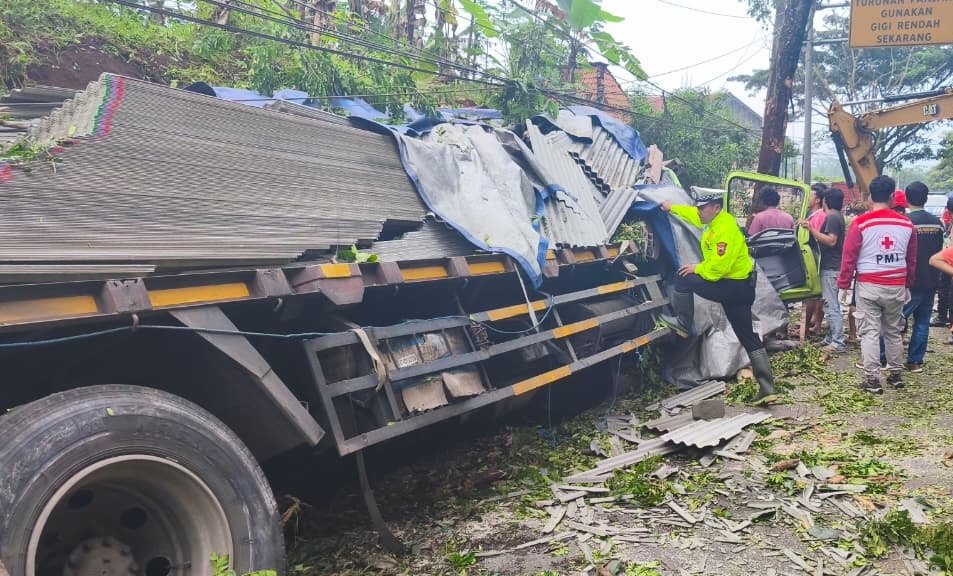 “Di pertigaan Gamol, truk diduga mengalami gangguan pada fungsi rem.