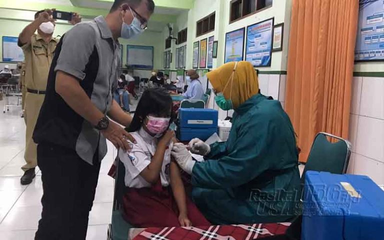 UNGARAN – Vaksinasi Covid-19 bagi kalangan usia 6-11 tahun di Kabupaten Semarang telah dimulai di tiga lokasi sekolah yakni SD negeri 01 Ungaran, SD Negeri 03 Sidomulyo dan SD Negeri 01 Bergas. Pelajar di masing-masing sekolah tersebut divaksinasi dosis pertama sejak Sabtu (18/12/2021).