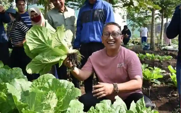 RASIKAFM.COM | SALATIGA - Penjabat (Pj) Wali Kota Sinoeng N Rachmadi berkesempatan memanen sayuran di Kebun KRPL Kuncup Mekar di Sukoharjo RW 06 Cebongan Argomulyo Salatiga. Dirinya senang atas pencapaian dan peran ibu-ibu PKK yang aktif dalam mengolah tanah menjadi lebih bermanfaat.