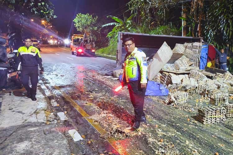 Petugas kepolisian yang tiba di lokasi segera melakukan pengamanan, menandai area kecelakaan, dan berkoordinasi dengan BPBD Kota Salatiga untuk membantu membersihkan jalan yang licin akibat pecahan telur. Langkah cepat ini dilakukan guna mencegah terjadinya kecelakaan susulan.