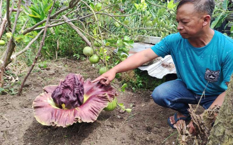 “Awalnya dari baunya yang tidak enak, saya cari-cari sumber baunya masih belum ketemu,Lalu saya mencari di pekarangan rumah saya ciu-cium lagi ternyata baunya dari bunga ini,” kata Listyono kepada media, Minggu (17/7/2022).