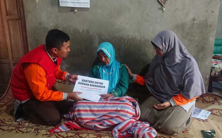 Pasca kebakaran yang menimpa Rumah salah satu warga Tajuk RT 02 RW 03 milik Siti Suwaibah (45) pada Kamis (15/9). Yayasan Izzatul Islam Getasan, melalui Koordinator Lazis Izzatul Islam, Dwi Pujiyanto didampingi beberapa guru menyalurkan bantuan kepada korban.
